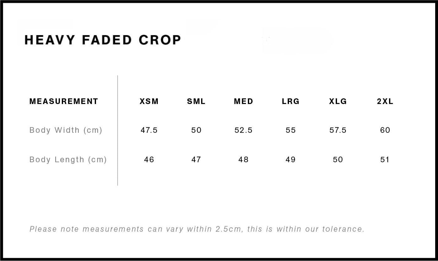 Construction: Wide neck ribbing with twin stitching, cropped full length, side seamed, shoulder to shoulder tape, double needle hems, garment dyed, preshrunk to minimise shrinkage