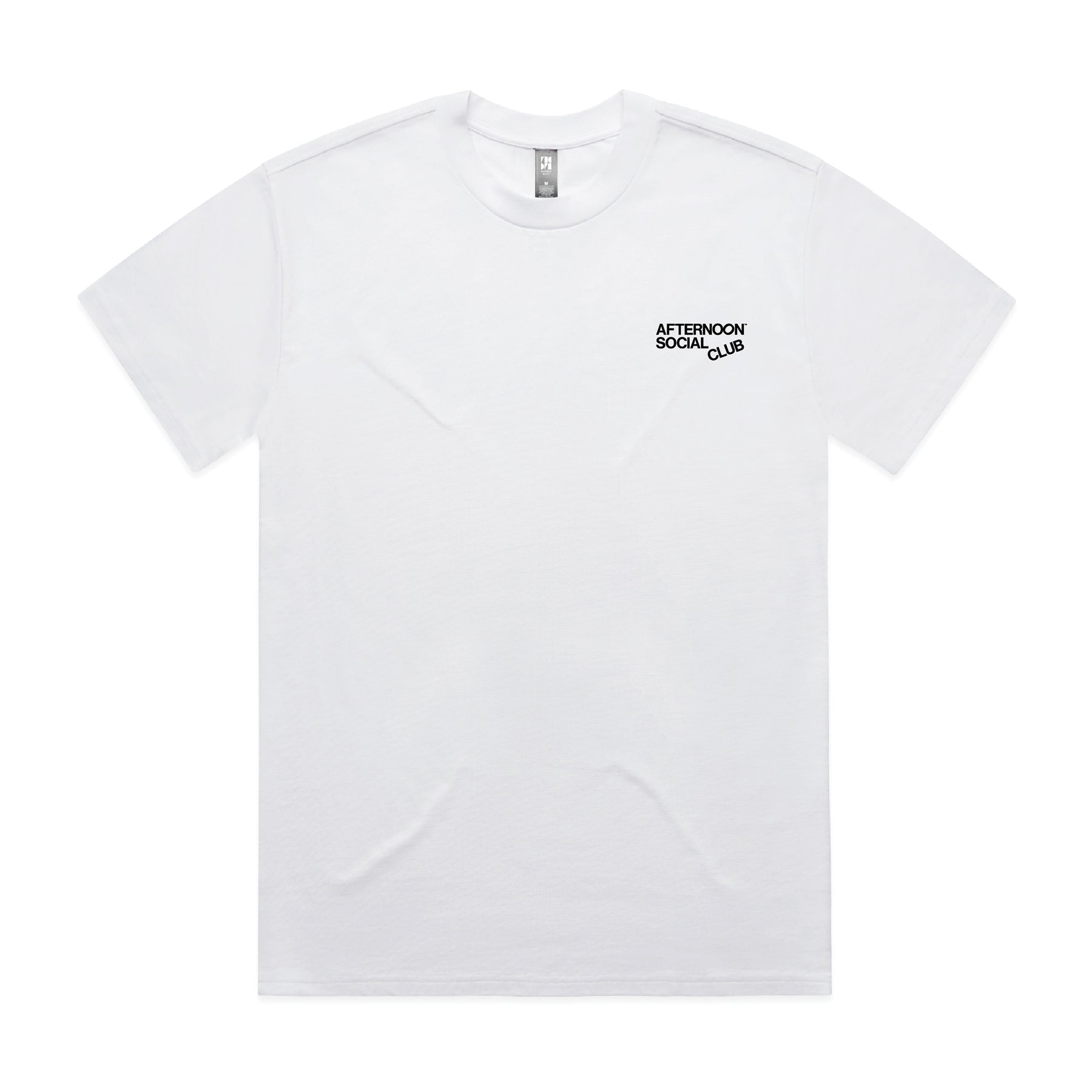 White Heavy Tee from Afternoon Social Club featuring logo, and durable 100% cotton fabric.